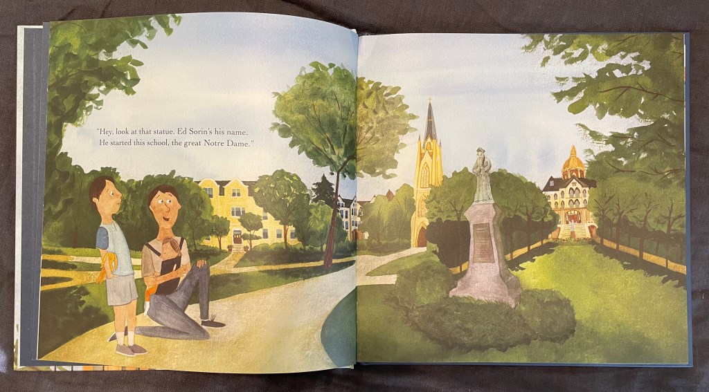 On its surface, the book is about building the university, but the main point is to introduce readers to the spirituality of the Congregation of Holy Cross (CSC), the order that founded the school. This spirituality as well as the accompaniment of the men and women of Holy Cross have been a profound gift to us, and we are overjoyed to share it with others in this new picture book.